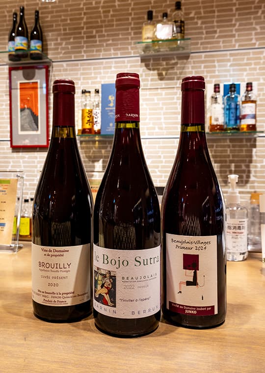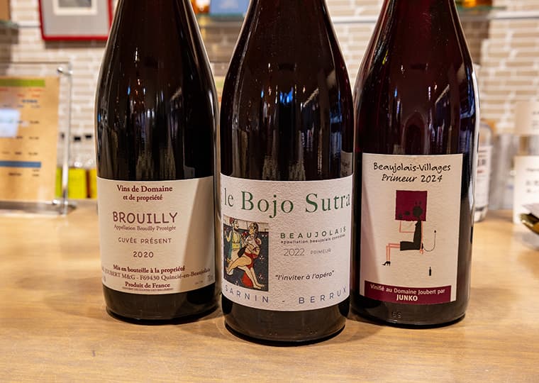 酸化防止剤を使わずに仕上げた「ル・ボジョ・ストラ」や、やや深みのある「ブルイィ・キュヴェ・ブレソン」など造り手の想いが伝わるワインも店頭に並んでいます。自然派もクラシックもそれぞれに美しい表情を見せてくれるのがボジョレーの魅力です。