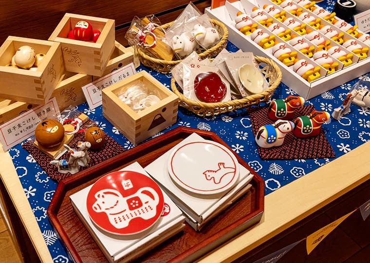 年末年始用の特別アイテムが勢揃いです 2F アンジェ ボン ルパスでは年末年始のお飾りなどのこの時期の特別なアイテムが店頭に並んでいます。祝いの席にふさわしい豆皿などぜひ店頭でご覧ください。 お知らせ 次 >