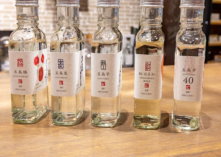 麦焼酎は、軽やかな飲み口の中に、ほのかな香ばしさ。椿酵母を使ったものなど、五島列島酒造ならではの工夫が感じられる焼酎もあります。
