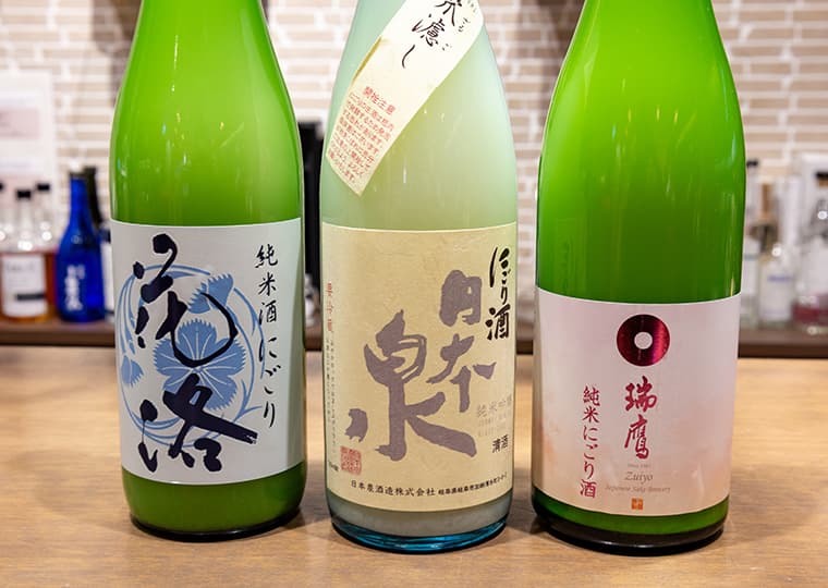 今回ご紹介するのは3本。京都・招徳酒造の「純米 にごり酒」は、にごり酒らしいコクがありつつ、食事と合わせやすいバランスで、最初の一杯にも選びやすいタイプです。岐阜・日本泉酒造の「純米吟醸 笊濾しにごり 生原酒」は、もう少ししっかりめ。生原酒らしいフレッシュさと旨みの厚みがあり、少しずつ味わうと印象が変わります。熊本・瑞鷹の「純米にごり酒」は、なめらかな口当たりで、やさしい甘みがふわっと出る一本。にごり酒が初めての方にもおすすめしやすい味わいです。