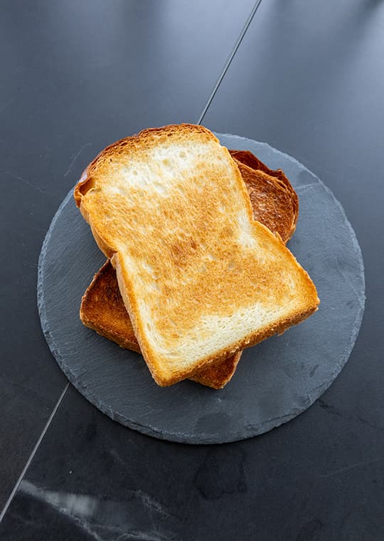 山型の食パンで角食に比べると軽さがあり、トーストすると香ばしさが立ちます。